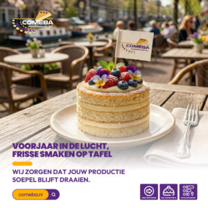 Comeba Foodservice is dé specialist in het produceren van kapsels voor gebak, taarten, desserts en ijsproducten. Wij leveren al meer dan 25 jaar halffabricaten in alle gewenste vormen en maten aan ambachtelijke- en industriële bakkerijen, retailers en cateraars én aan de grootste grossiers, die ons land kent.